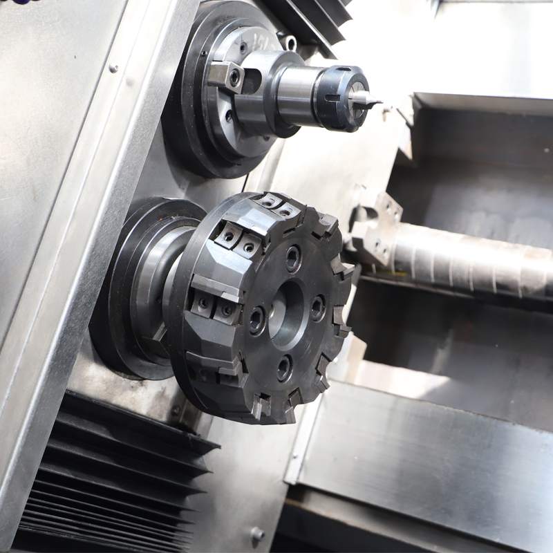 設備采(cǎi)用四軸Z1、X1,Z2、X2坐标結構(gou)驅動,伺服系統控(kong)制,可以對各種軸(zhóu)類零件一次裝夾(jiá),同時完成兩端面(miàn)銑削、鑽中心孔加(jia)工、攻螺紋等💛加工(gong)。